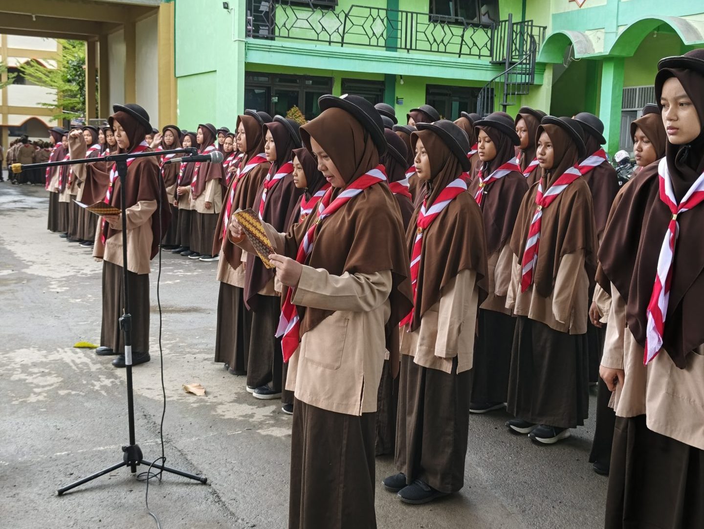 Bertindak sebagai Pembina Upacara, Kak Misyono S.Pd., M.Pd. menyampaikan amanat yang menekankan bahwa tema peringatan tahun ini bukanlah sekadar slogan, melainkan sebuah tekad nyata. Pramuka, menurut beliau, harus menjadi garda terdepan dalam menjaga Pancasila dan memperkuat ketahanan bangsa.